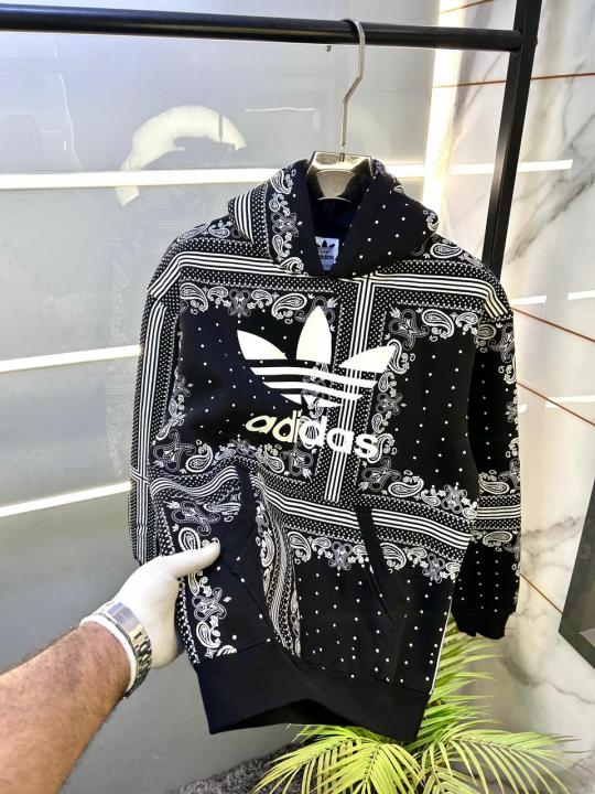 Home Hoodies Adida s Imported Allover Print Black Super Premium Hoodie F3311-B1