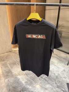 Balenciaga Black velvet Front Print Round neck Tshirt