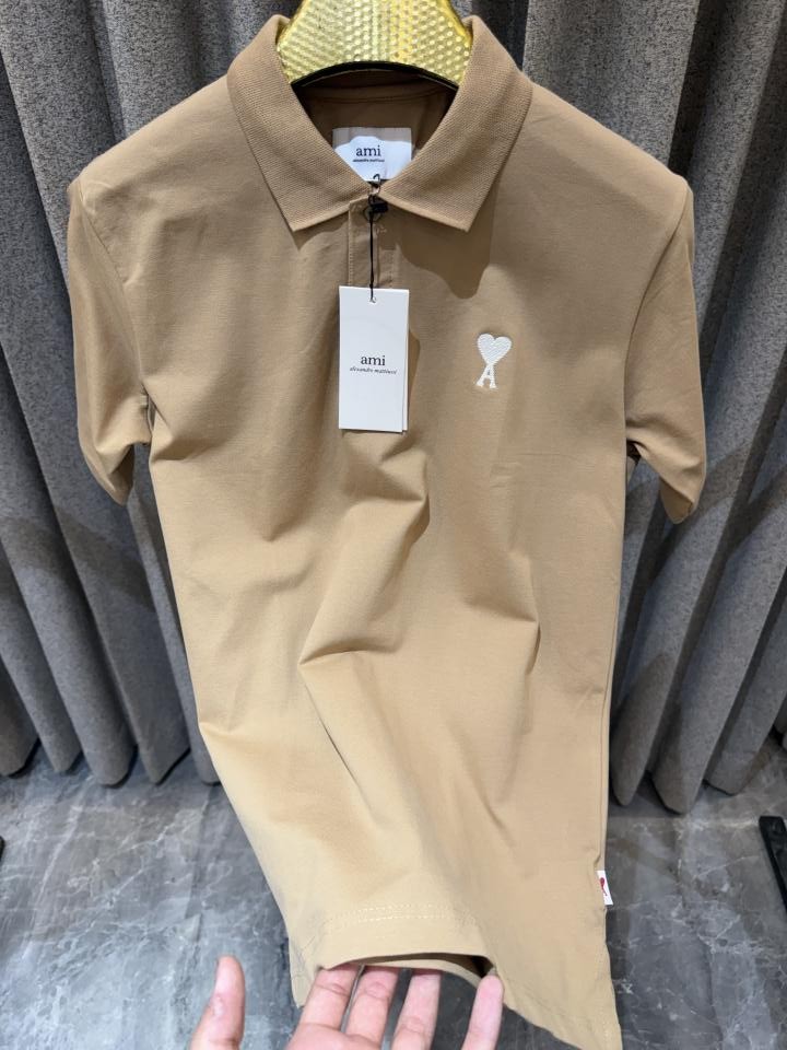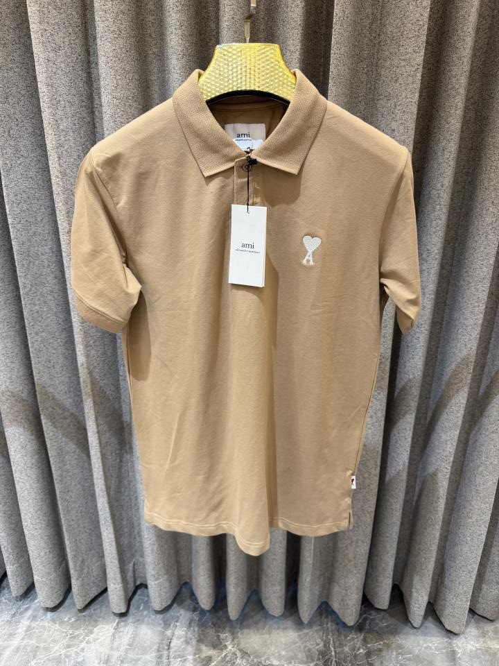 Ami Paris Beige Brown White logo premium quality Polo Tshirt