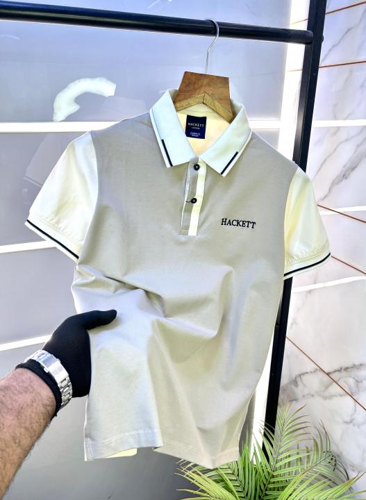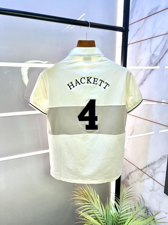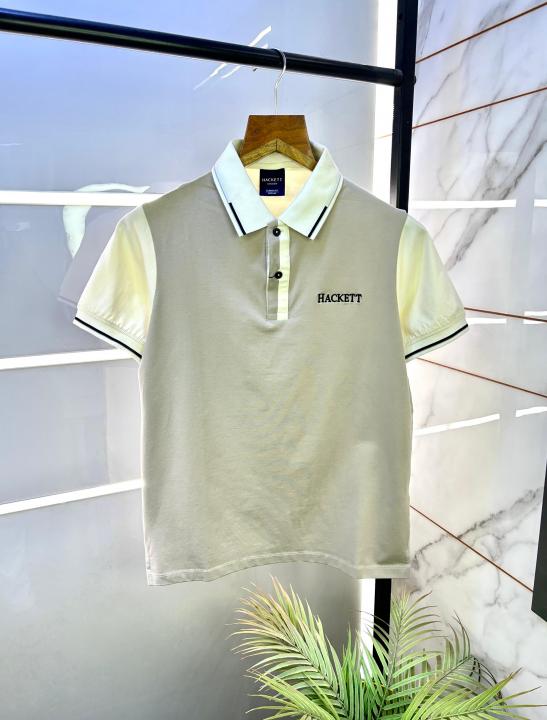 Home T-Shirts Hacket t London Grey Embroidery Back Print Premium Collar Neck T-shirt F2863-GY