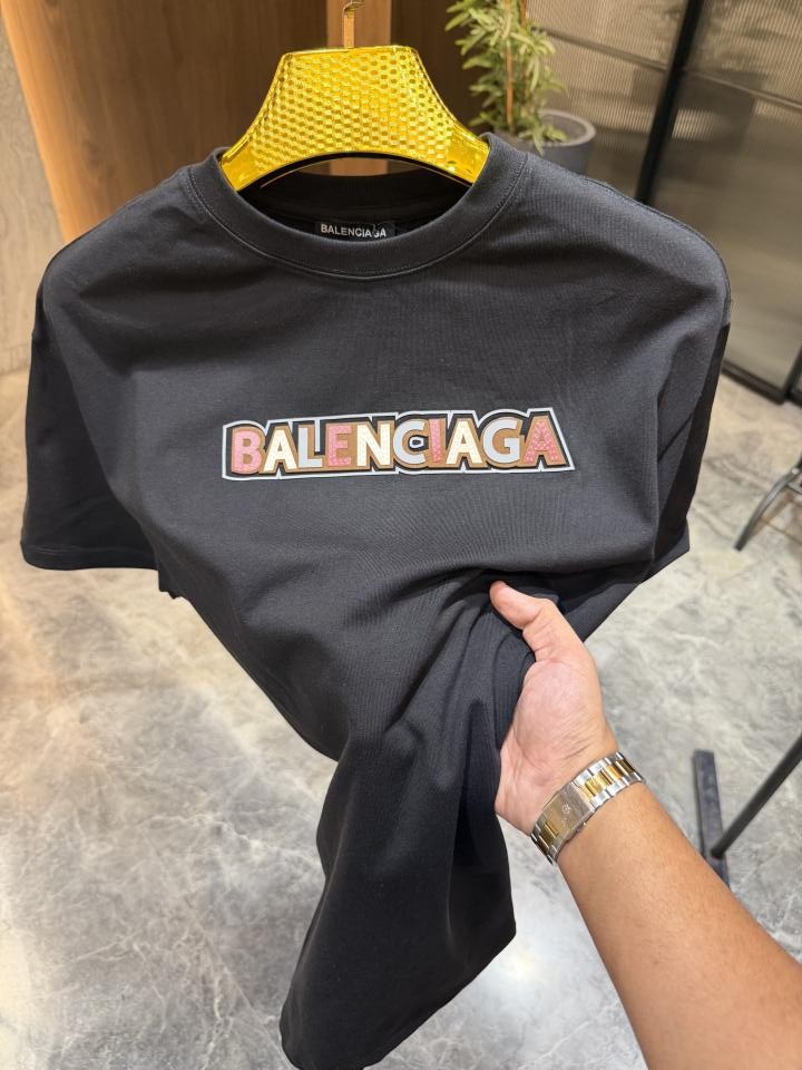 Home T-Shirts Balenciaga Black velvet Front Print Round neck Tshirt