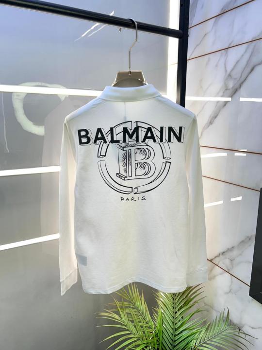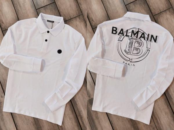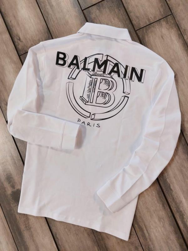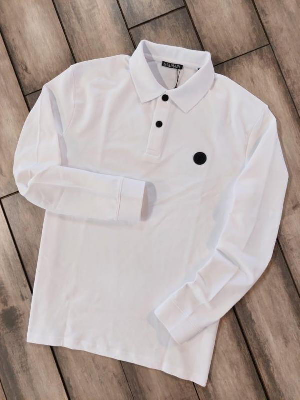 Home T-Shirts Balmai n Paris Back Print White Polo Neck Full Sleeves Premium Collar T-shirt F3454-W2