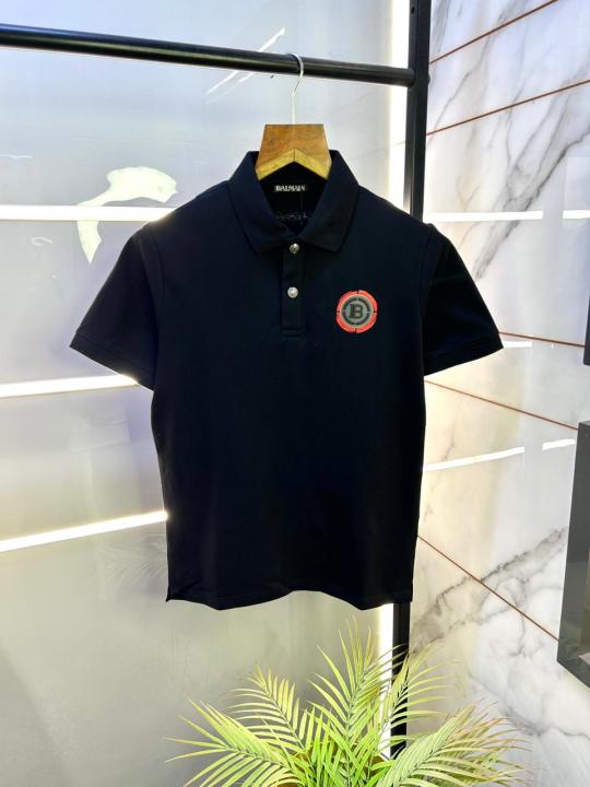 Home T-Shirts Balmai n Paris Black Imported Back Print Premium Polo Collar Neck T-shirt F3126-B2