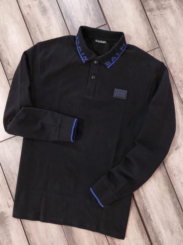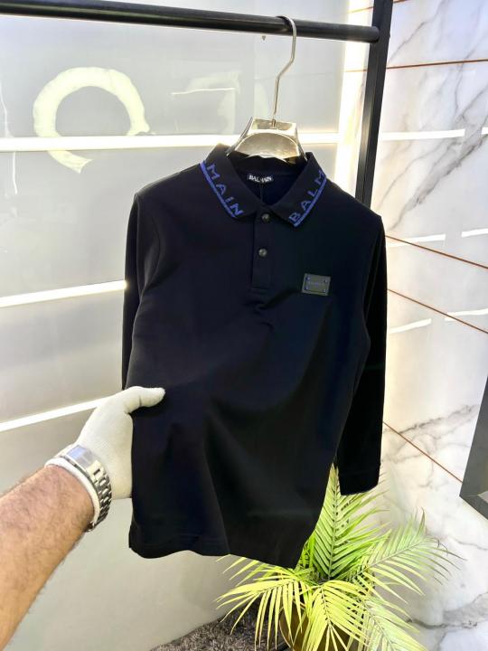 Home T-Shirts Balmai n Paris Black Polo Neck Full Sleeves Premium Collar T-shirt F3454-B2