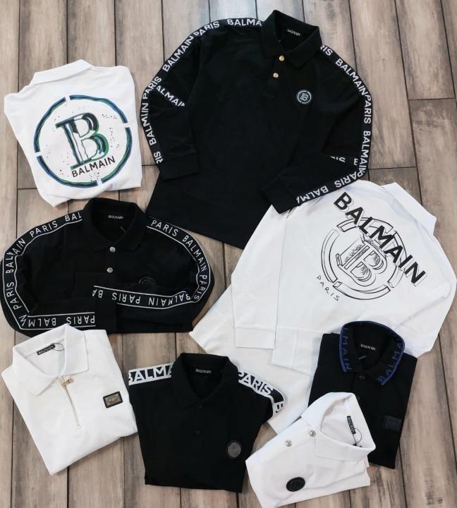 Home T-Shirts Balmai n Paris Black Polo Neck Full Sleeves Premium Collar T-shirt F3454-B3