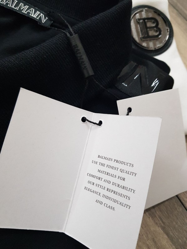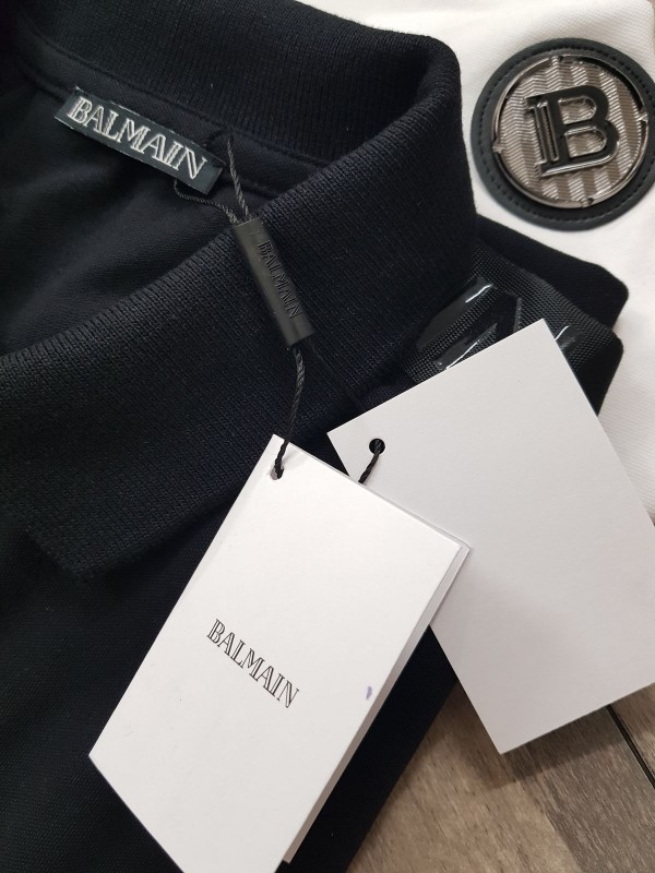 Home T-Shirts Balmai n Paris Metal Logo Imported Embossed Print Black Collar Neck T-shirt F2832-BL
