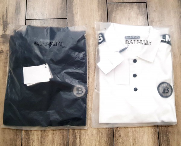 Balmai n Paris Metal Logo Imported Embossed Print White Collar Neck T-shirt F2832-WH