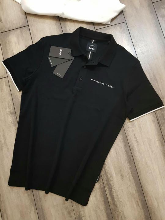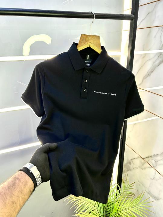 Home T-Shirts Boss x Porsche Edition Black Collar Neck Premium Polo T-shirt F1829-BL