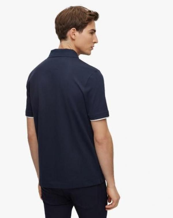 Hugo Bos s Inkblue Premium 240 gsm interlock compact cotton fabric Polo Tshirt with Front Design and Emboss Logo 3367