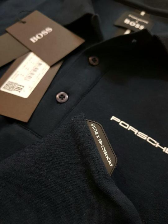 Home T-Shirts Boss x Porsche Edition Navy Collar Neck Premium Polo T-shirt F1829-NY