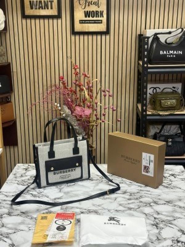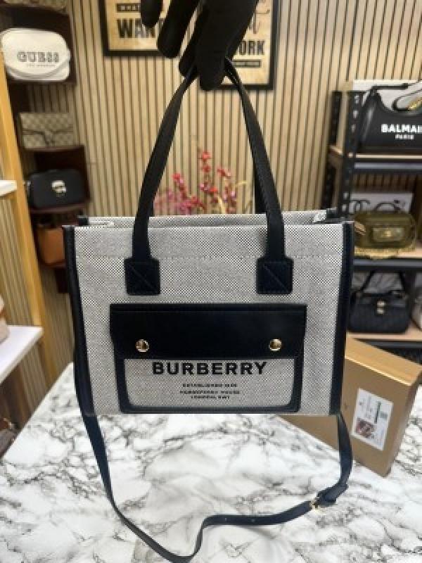 BURBERR_Y CANVAS HORSEFERRY SHOULDER BAG WITH OG BOX AND DUST BAG (BLACK)