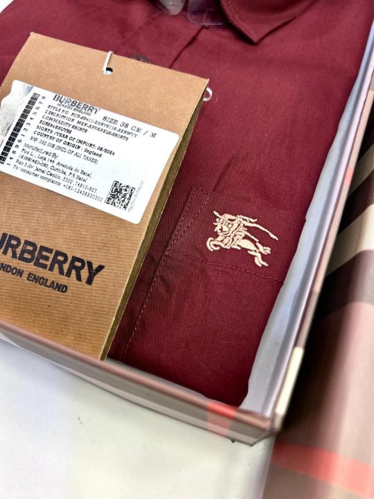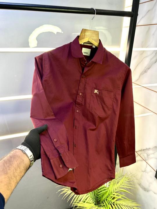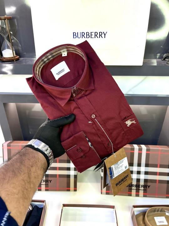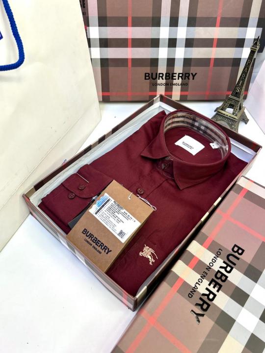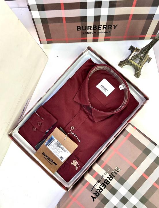 Home Shirts Burberr y Maroon Premium Shirt With Brand Box Packing and Carry Bag F1946-MA