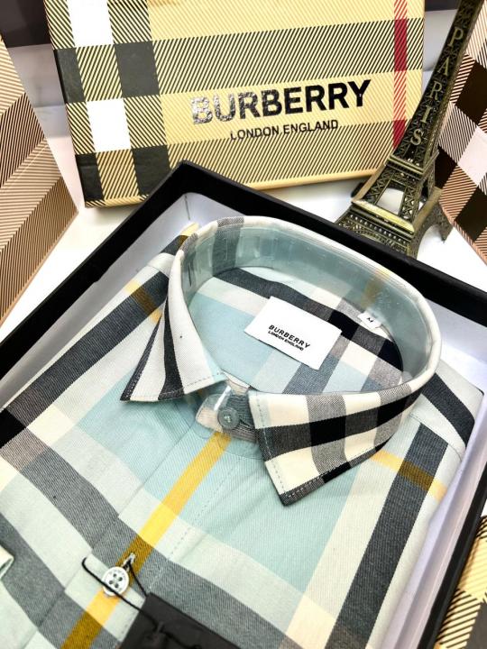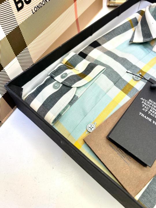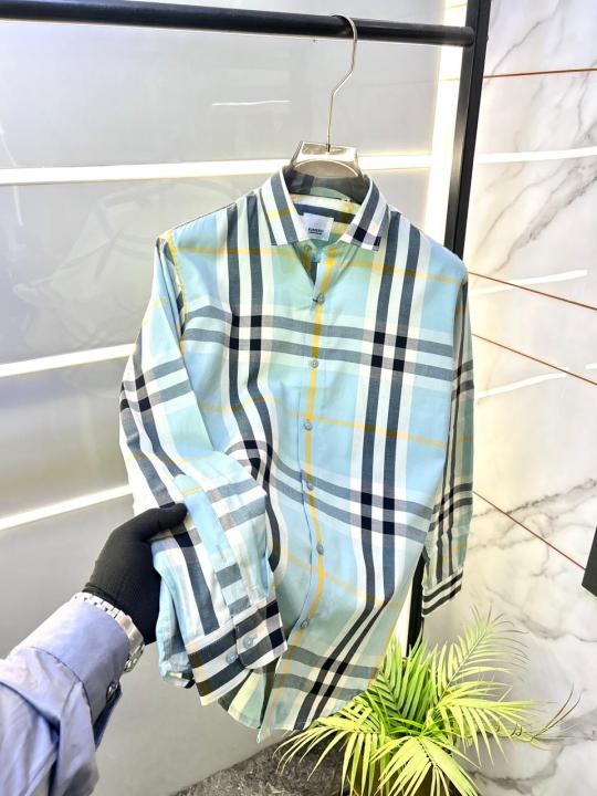 Burberr y Mint Premium Checks Shirt With Brand Box Packing and Carry Bag F2981-MI