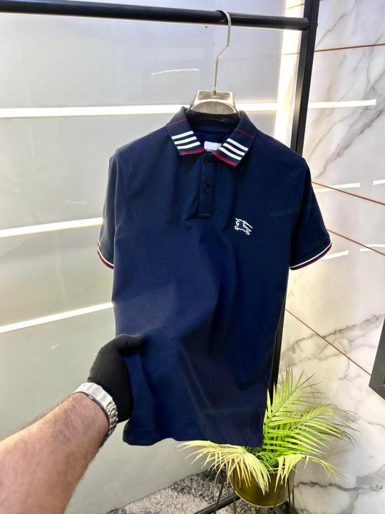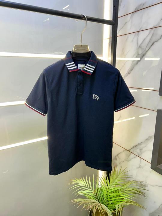 Home T-Shirts Burberr y Navy Premium Collar Neck Polo T-shirt F2913-NY