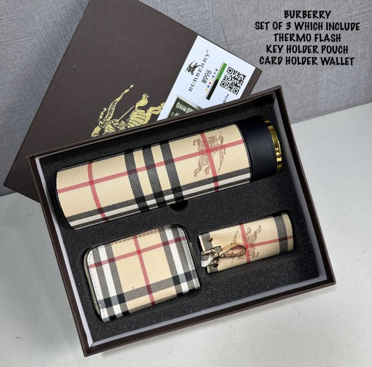 BURBERR.Y SET THERMOS & KEY HOLDER & CARD HOLDER PREMIUM WITH OG BOX
