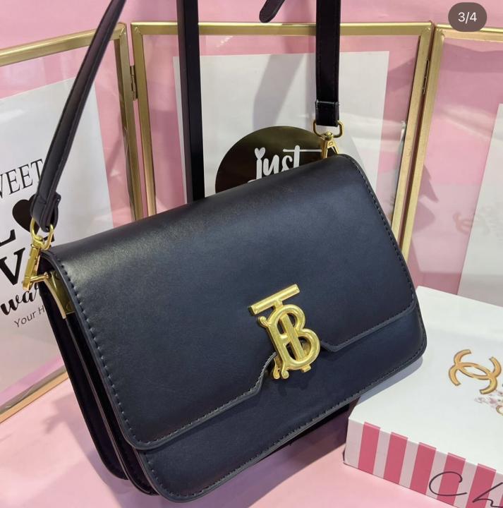 BURBERR.Y TB BLACK LEATHER PREMIUM BAG WITH OG BOX PACKING