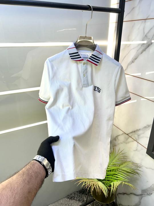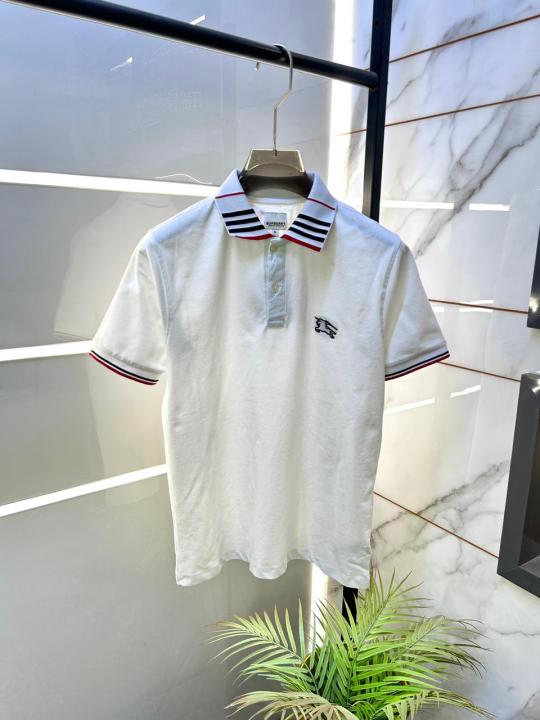 Home T-Shirts Burberr y White Premium Collar Neck Polo T-shirt F2913-WH