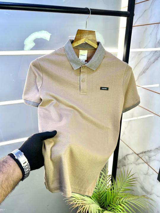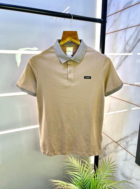 Home T-Shirts Calvin_Klein Beige Premium Collar Neck Polo T-shirt F2874-BE