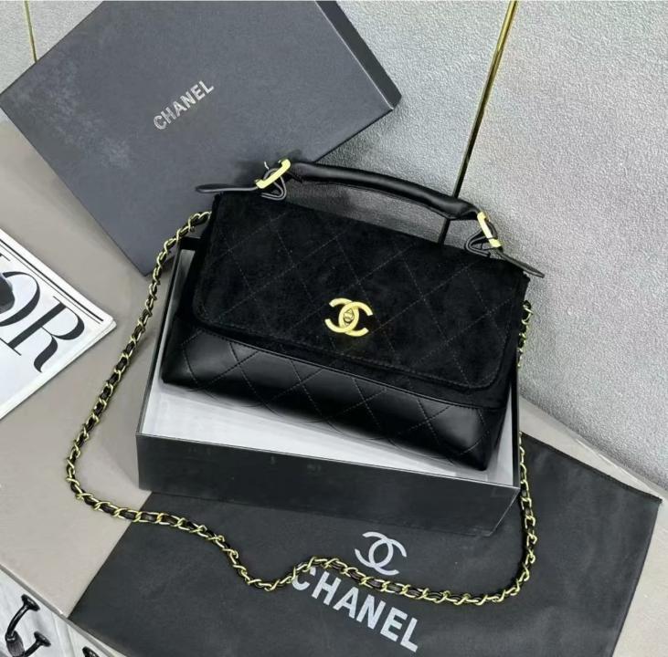 CHANE.L SUEDE FLAP & BLACK LEATHER WITH PREMIUM OG BOX