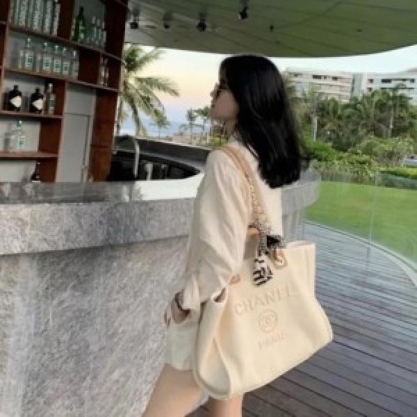 Home Hand bags chanel-deauville-pearl-canvas-tote-bag-black-221-(966)