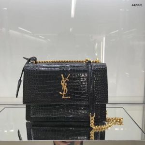 Ysl Sunset Croc Skin Shoulder Sling Bag With Original Box & Dust Cover Packaging