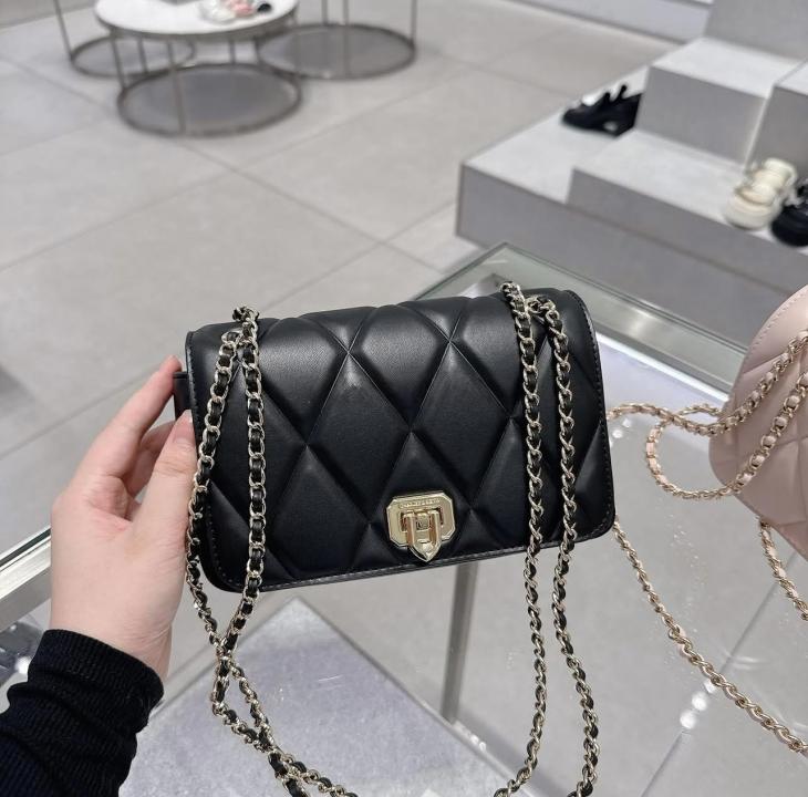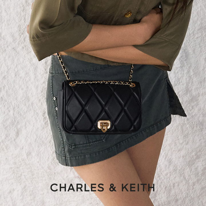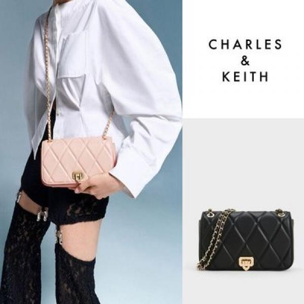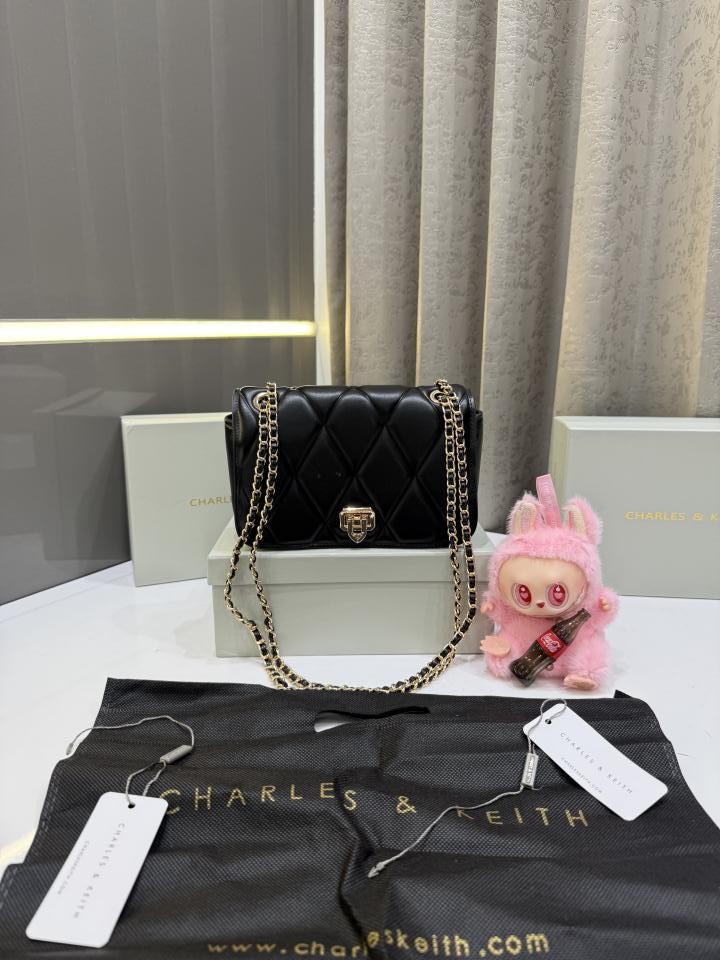 CHARLES & KEITH BLACK ARWEN DIAMOND QUILT BRAIDED STRAP SHOULDER BAG WITH OG BOX & PACKING & LABUBU FREE GIFT