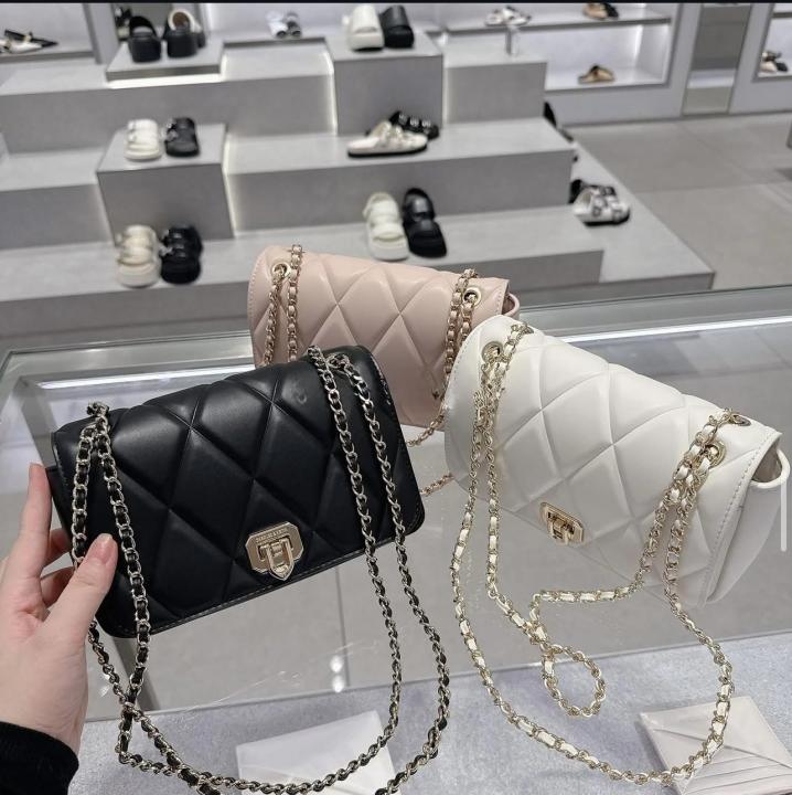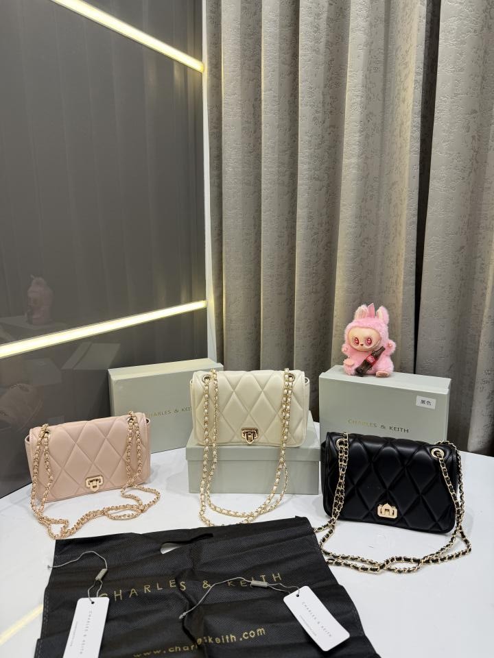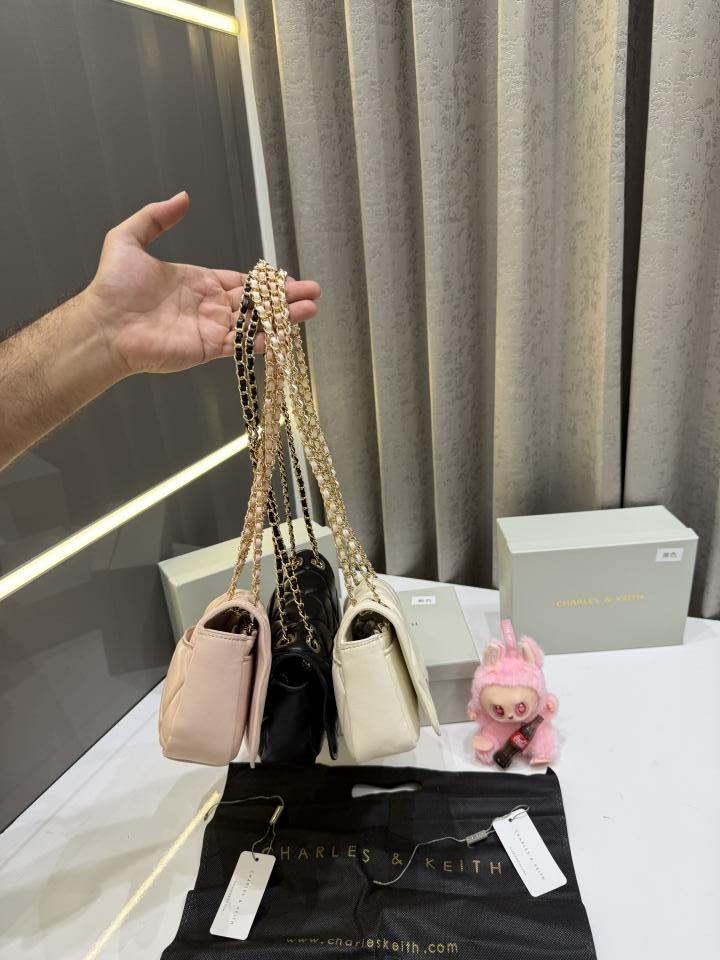 CHARLES & KEITH WHITE ARWEN DIAMOND QUILT BRAIDED STRAP SHOULDER BAG WITH OG BOX & PACKING & LABUBU FREE GIFT