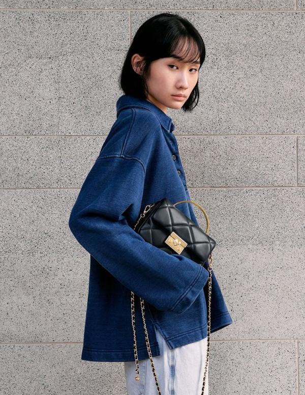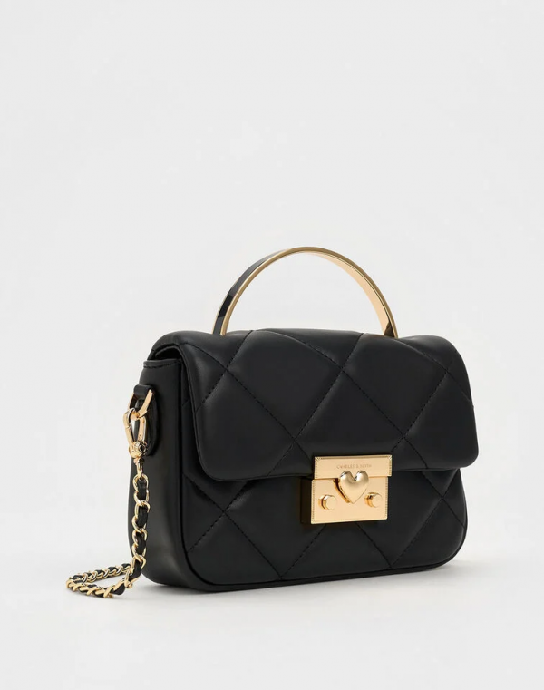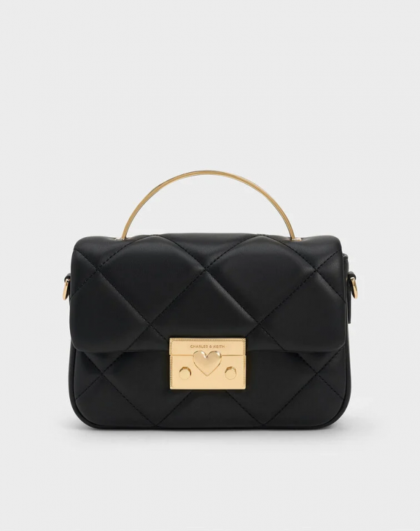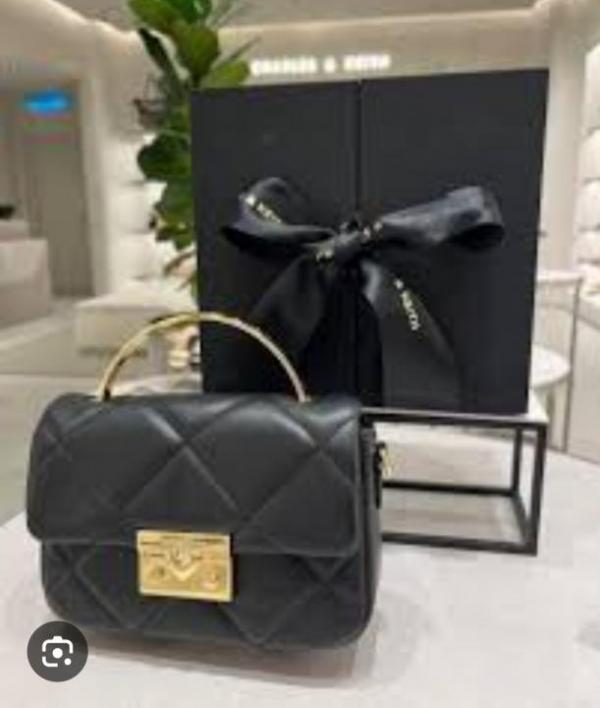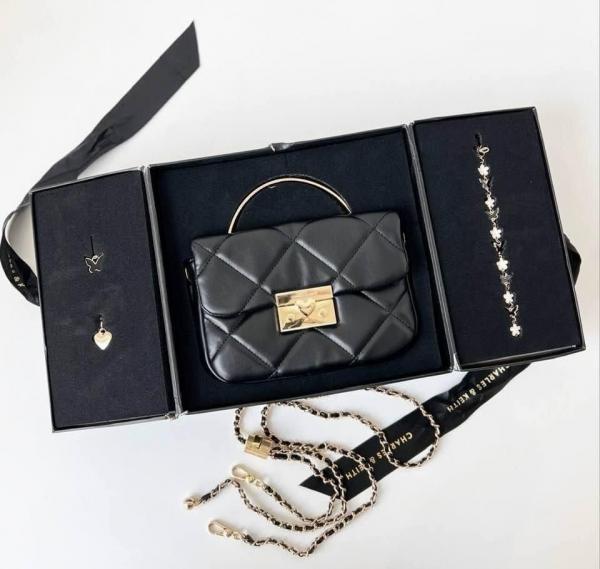 Charles & Keith Boxy Quilted Top Handle Bag Gift Set Slightly Damage Black Box (White)
