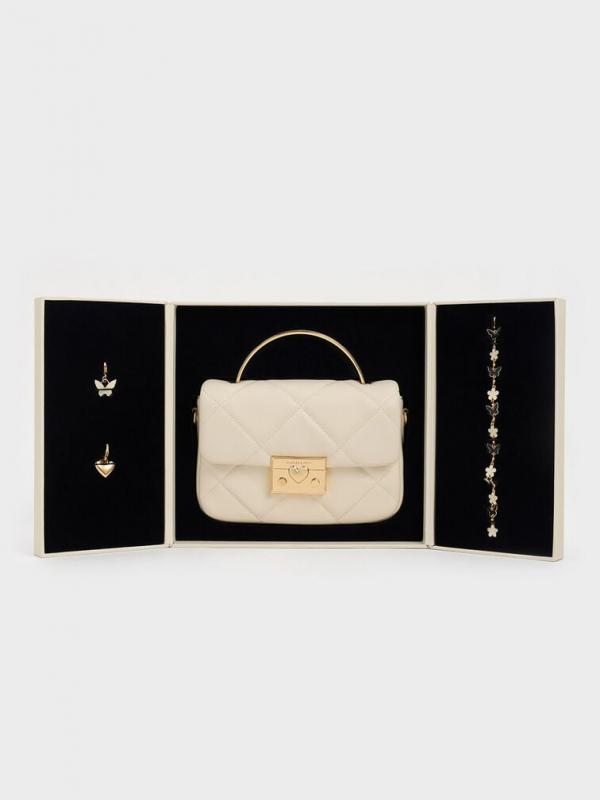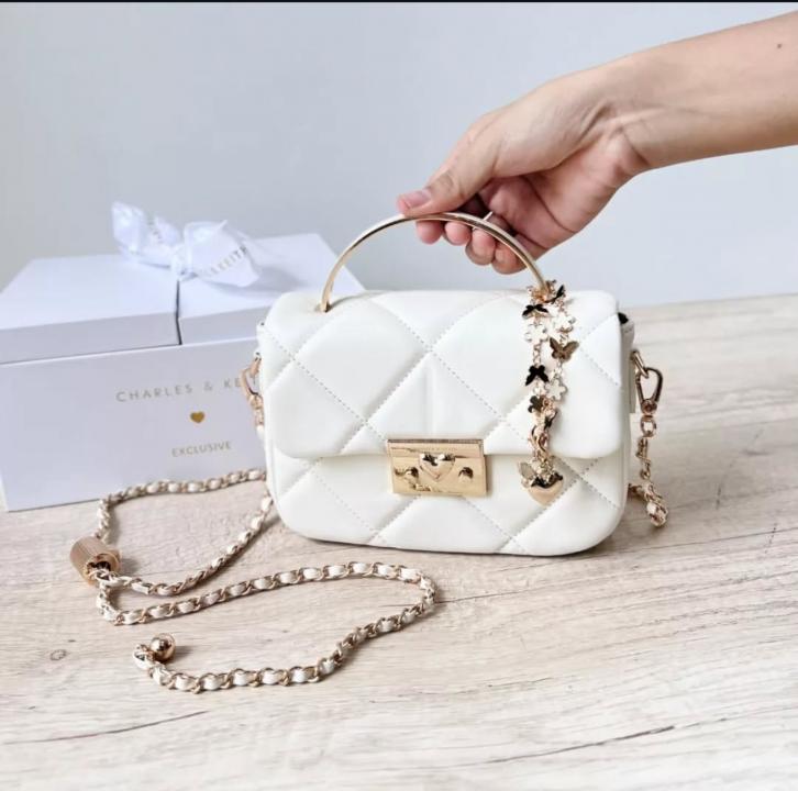 CHARLES KEITH HEART CHAIN BLACK BAG PREMIUM WITH GIFT BOX