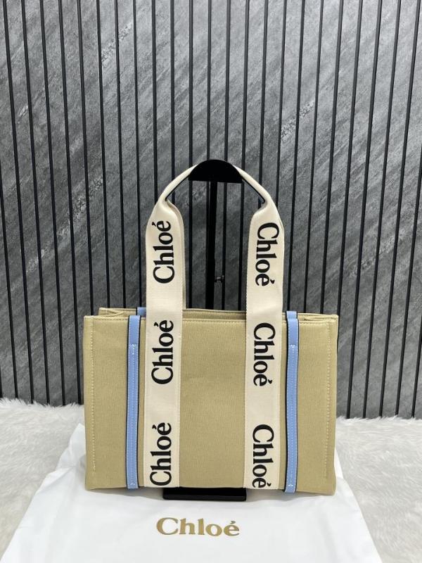 Chloe Blue Medium Canvas Woody Tote With Dust Cover Blue