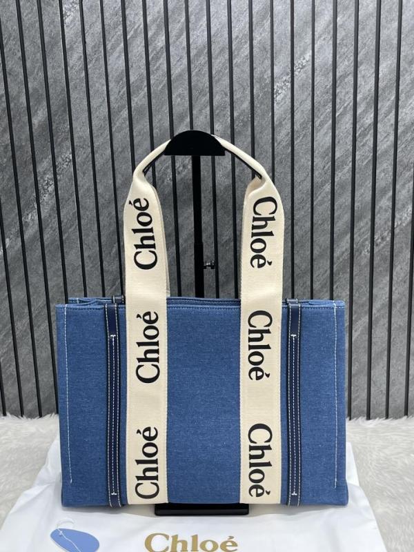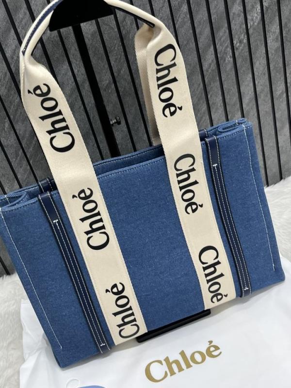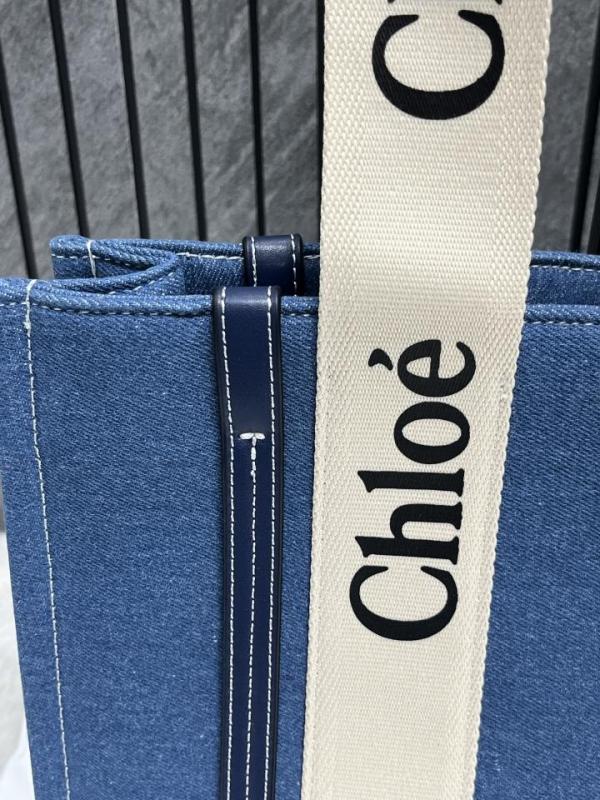 Chloe Denim Medium Canvas Woody Tote With Dust Cover Denim Blue
