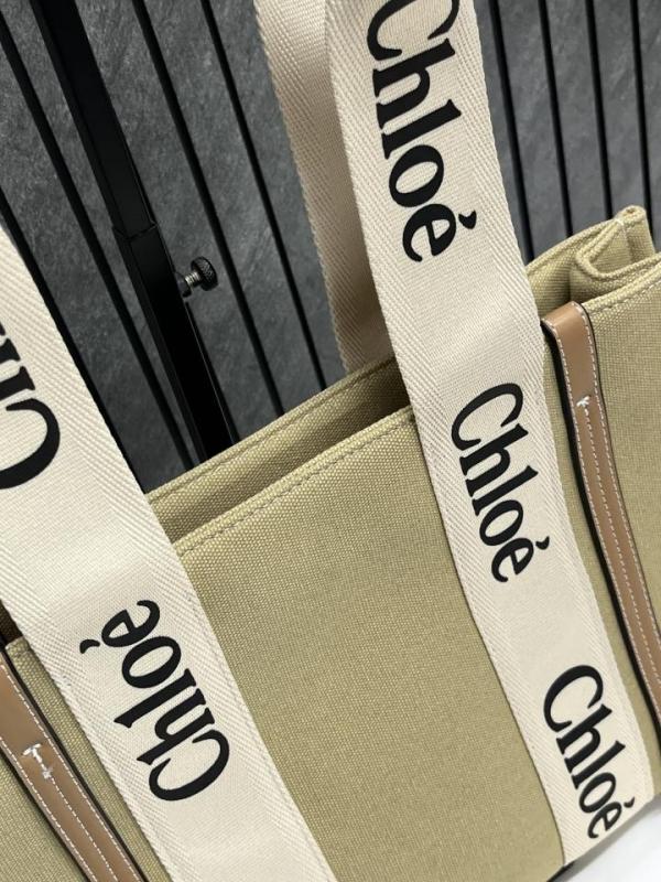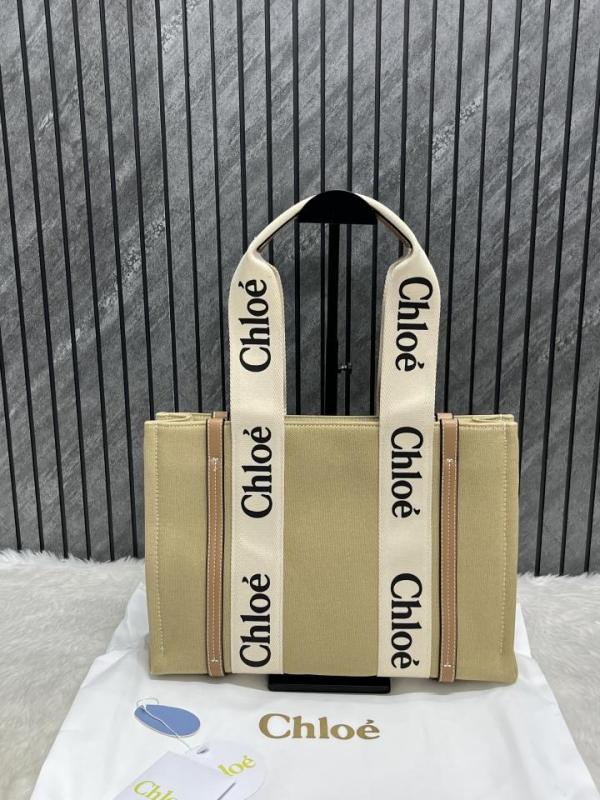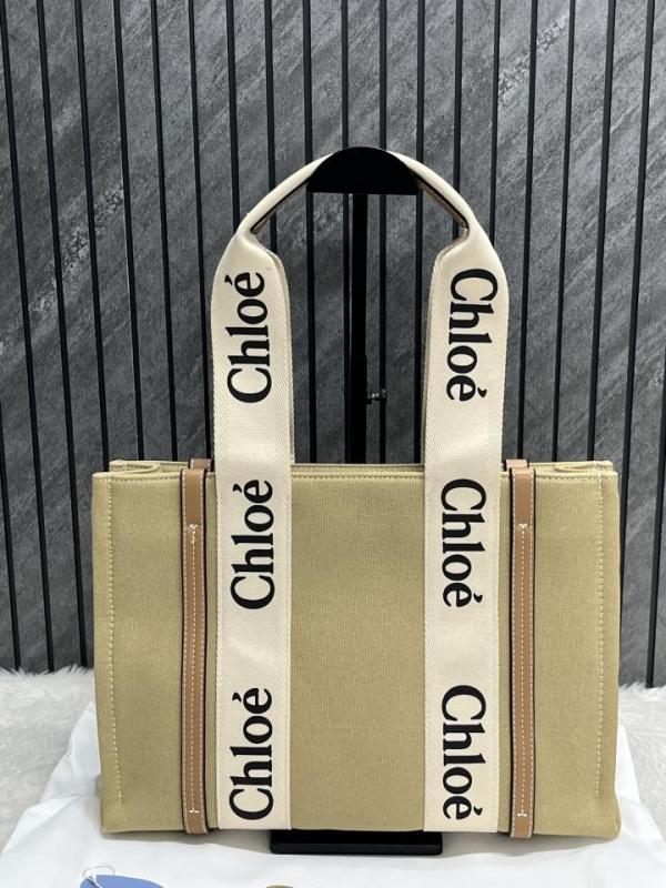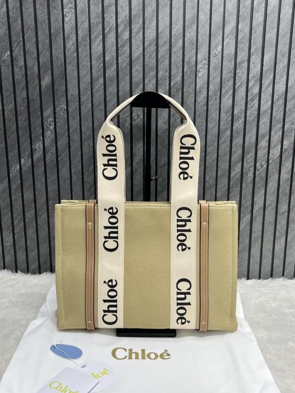 Chloe Brown Medium Canvas Woody Tote With Dust Cover Brown