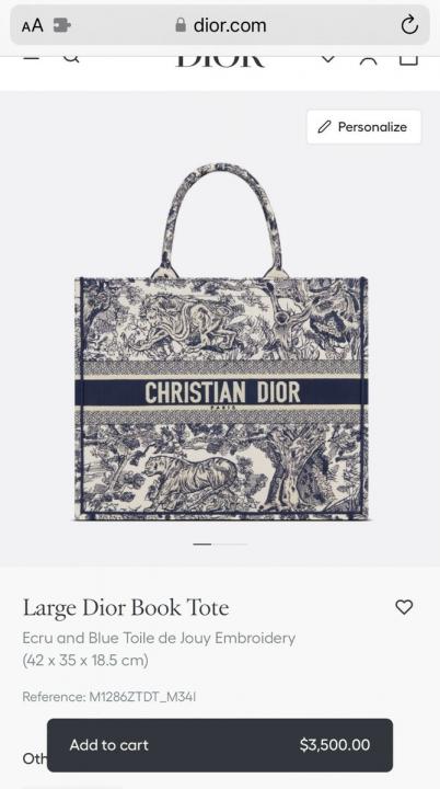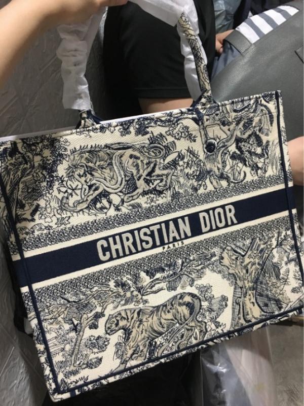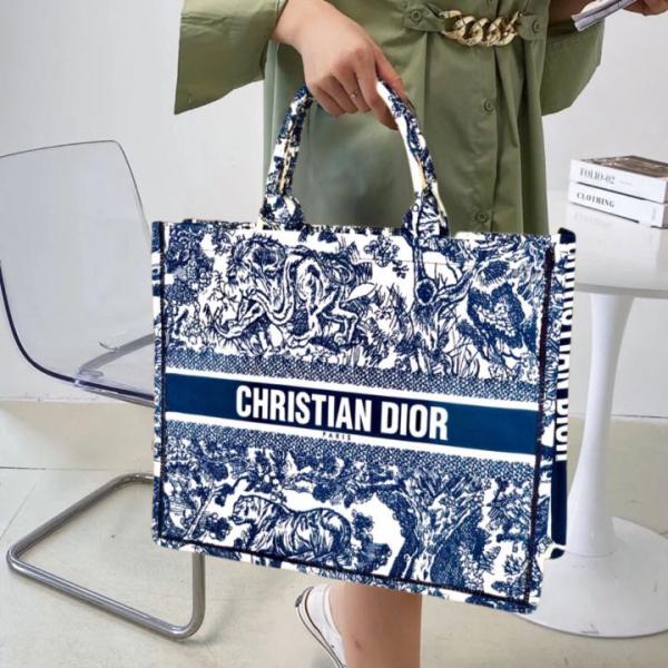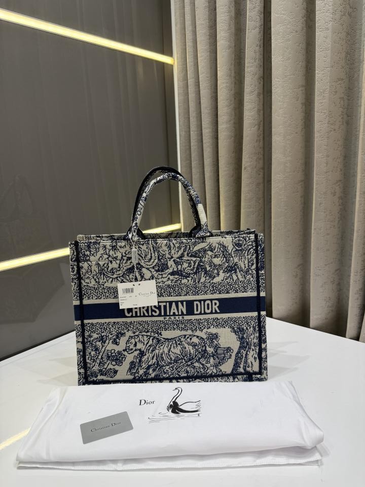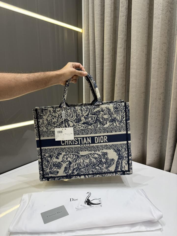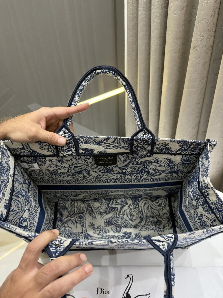 CHRISTIAN DIO.R BLUE EMBOSSED TOTE BAG WITH DUST BAG & CARD