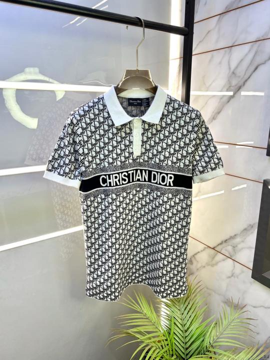 Christian Dio r Imported knitted Monogram Super Premium White Collar Neck Polo T-shirt F3481-WH