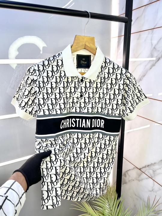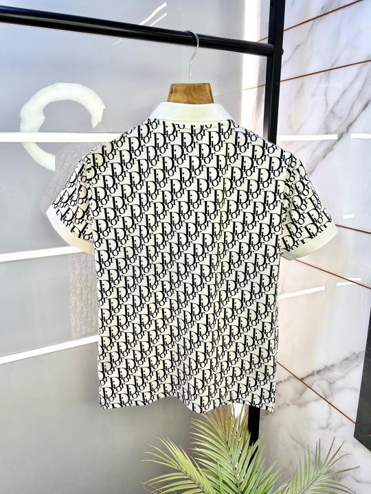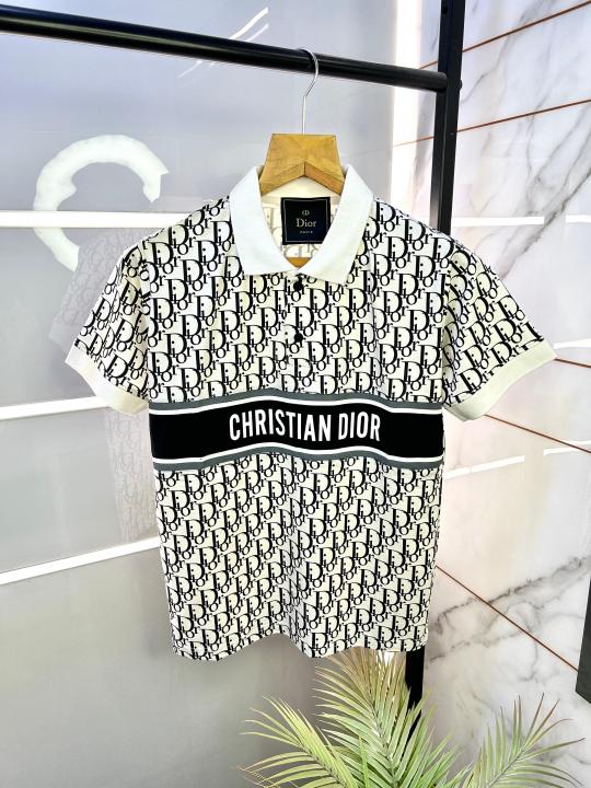 Christian Dio r Imported White Monogram Print Premium Collar Neck Polo T-shirt F2305-WH