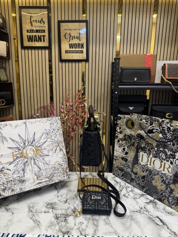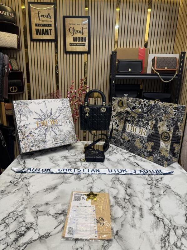 CHRISTIAN DIO_R LADY COMBO WITH OG BOX SCARF MINI WALLET PREMIUM QUALITY (BLACK) (NO RETURN)