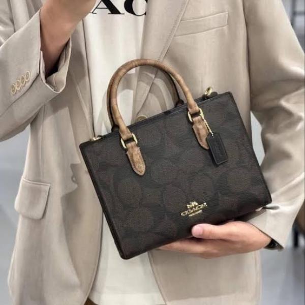 COAC.H MAGGIE SMALL TOTEBAG IN BLOCKED SIGNATURE CANVAS WITH OGBOX