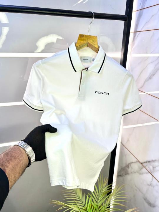 Home T-Shirts Coac h White Premium Collar Neck Polo T-shirt F2993-WH