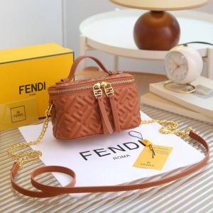 FEND.I VANITY BAG BROWN LEATHER WITH EMBOSSED PRINT PREMIUM WITH OG BOX