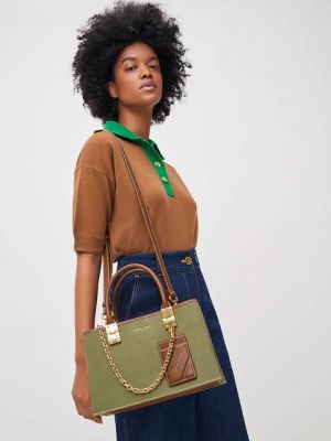 CHARLE.S & KEITH LARGE DOUBLE HANDLE CANVAS AVOCADO HANDBAG WITH EXTRA CARRY BAG