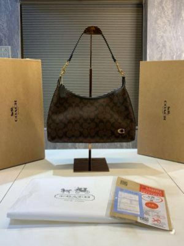 Coach_Kleo_Hobo_In_Signature_Canvas_With_Box_&_Dust_Bag_&_Sling_Belt_Apricot_White_C8470