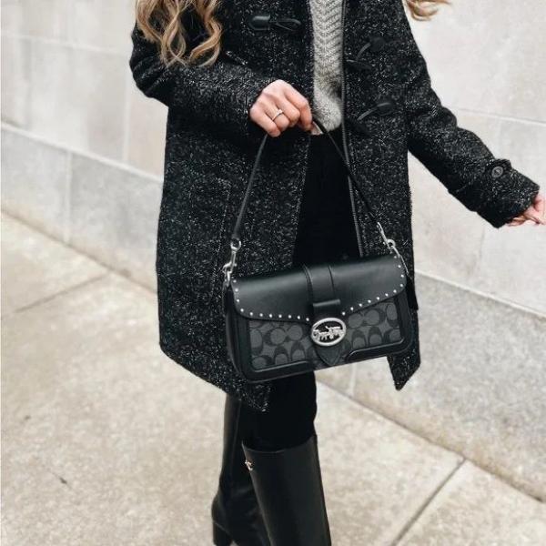 Coach_Georgie_Black_ShoulderBag_With_OriginalBox_DustCover_1Short_And_1LongBelt