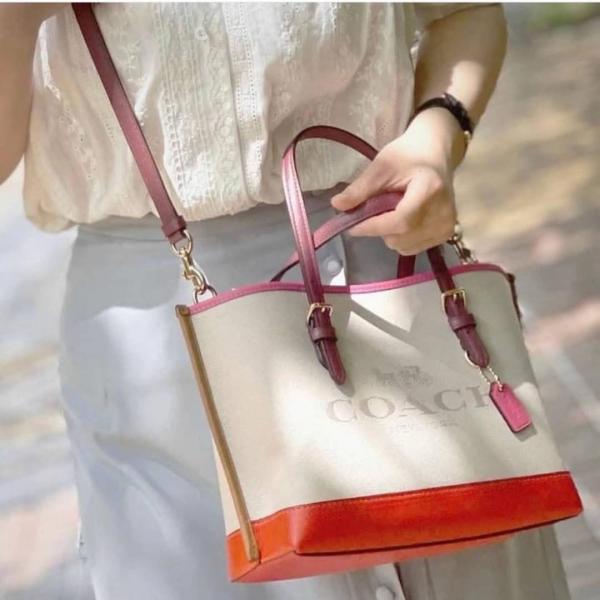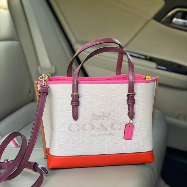 Coach_Mollie Tote 25 in Colorblock (Natural Mango Multi With Double Box premium quality