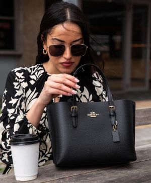 Coach_Mollie_Tote_25_Signature_Canvas_Black_Leather_With_Dust_Cover_&_Carry_Bag_Black