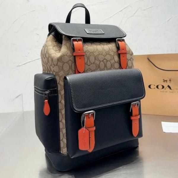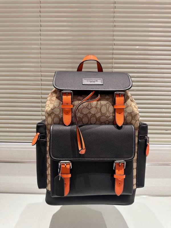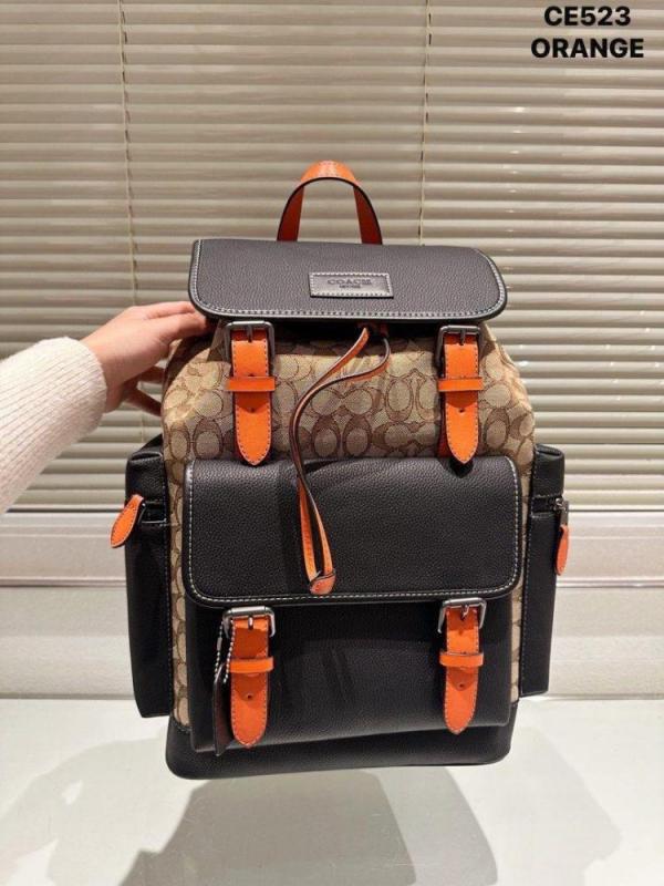 Coach_Unisex_Rivington_Backpack_Apricot_Cloth_With_Orange_Leather_High_Quality_With_Dust_Bag_CE523_Apricot_Cloth_With_Orange