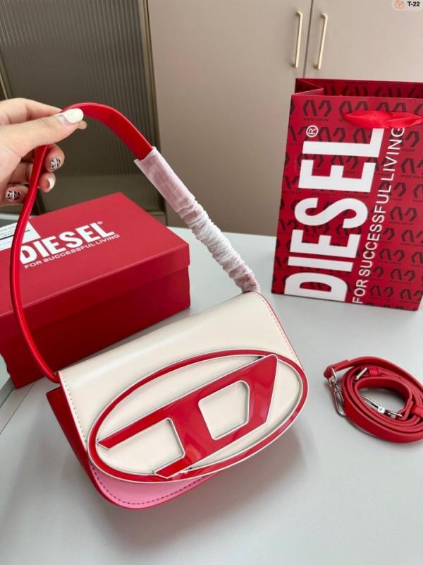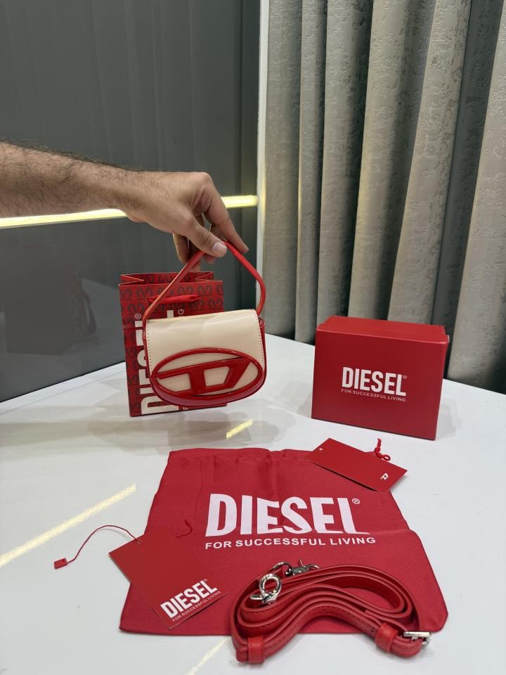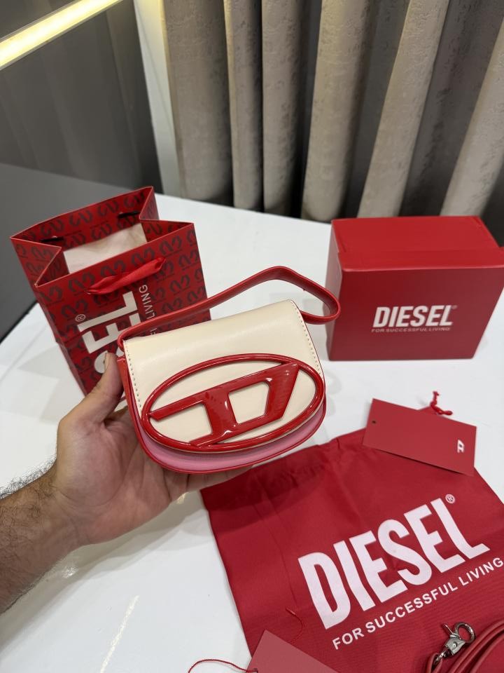 DIESE.L 1DRSHOULDER BAG CREAMOF.F WHITE WITH RED RED TRIN PREMIUM SAME PACKING