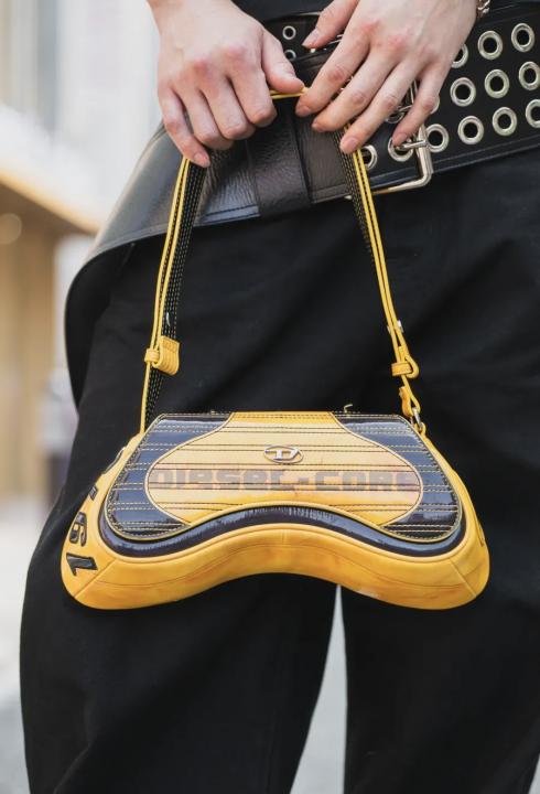 Home Hand bags DIESE.L YELLOW PLAY-GLOSSY CROSSBODY BAG BIKER-INSPIRED SILHOUETTE PREMIUM WITH OG BOX