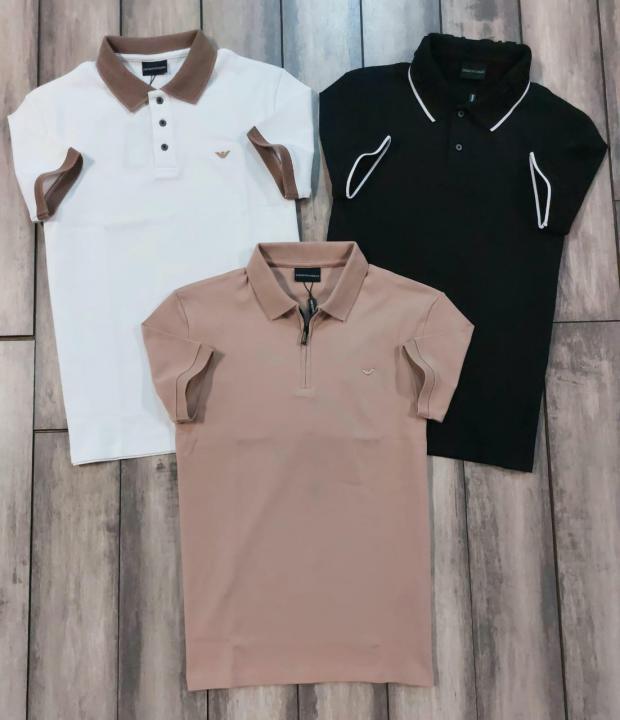 Home T-Shirts Emporio Arman_i Black Polo Premium Collar Neck T-shirt F3576-BL