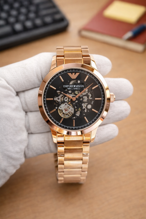 EMPORIO ARMANI MECCANICO 03 AUTOMATIC ROSE GOLD BLACK DIAL