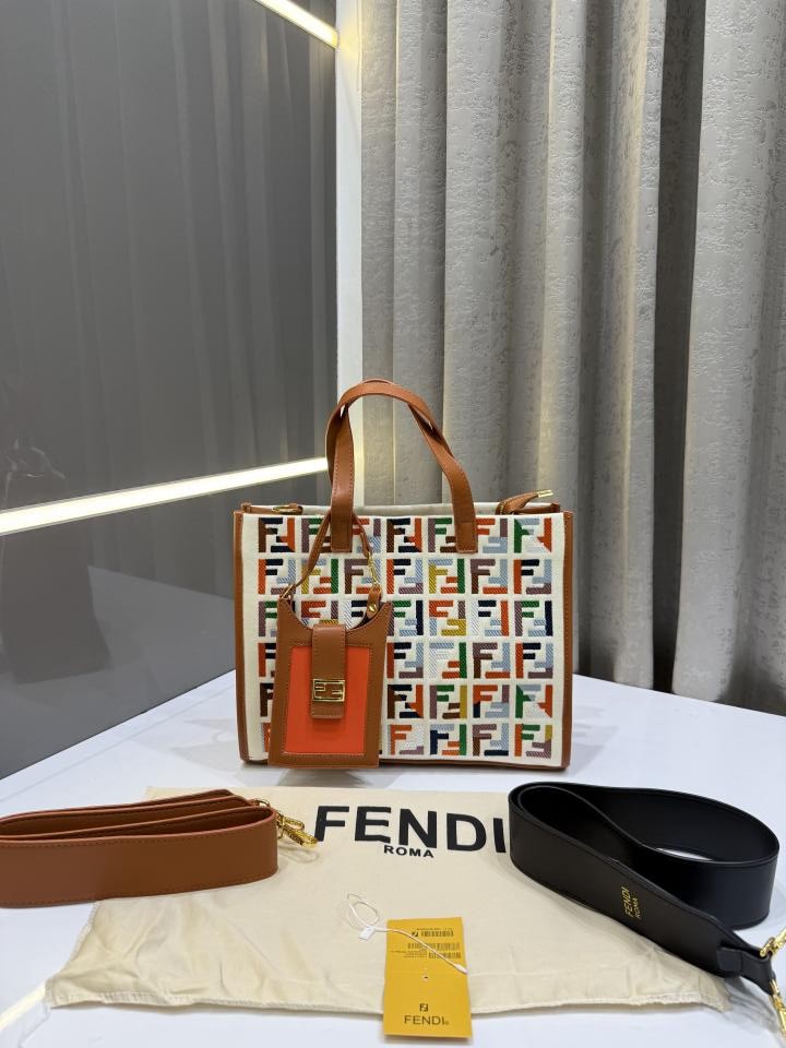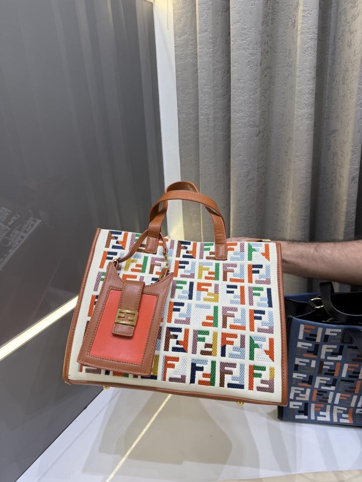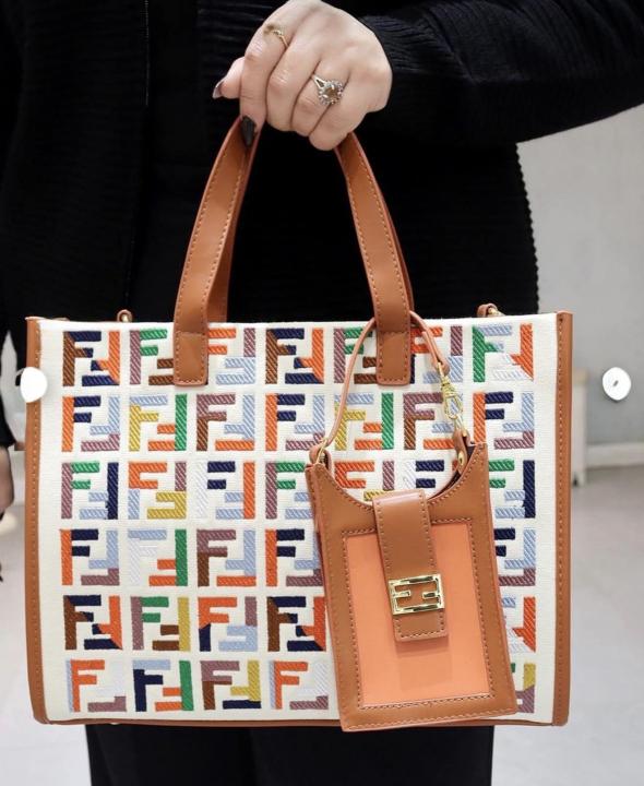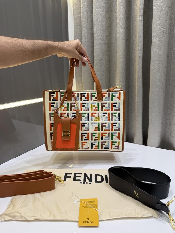 FEND.I BAGUETTE MINI CANVAS BAG WITH WHITE MUTICOLOUR PREMIUM TOTE WITH DUST BAG